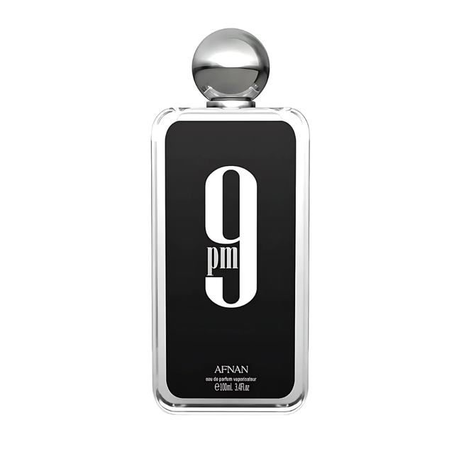 Afnan 9PM es una fragancia masculina de la familia olfativa Ámbar Vainilla, Su aroma combina notas frescas y especiadas con un fondo dulce y cálido, ofreciendo una experiencia olfativa envolvente y sofisticada.