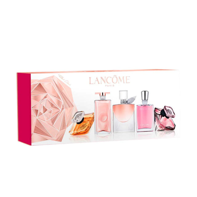 El set de miniaturas de 5 piezas de Lancôme incluye varios de sus perfumes icónicos en formato miniatura, lo que permite probar diferentes fragancias. Por lo general, estos sets de regalo contienen los siguientes aromas: